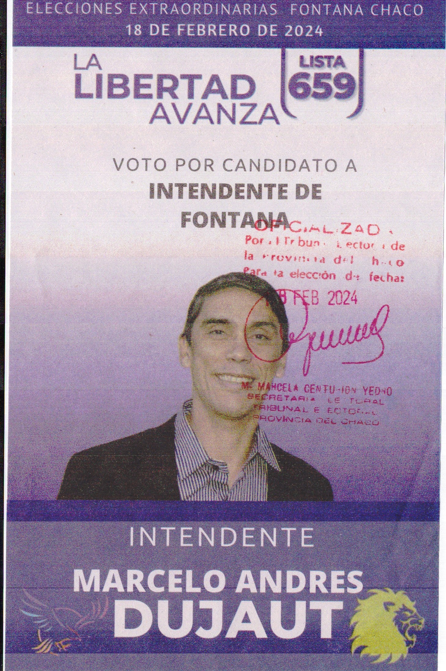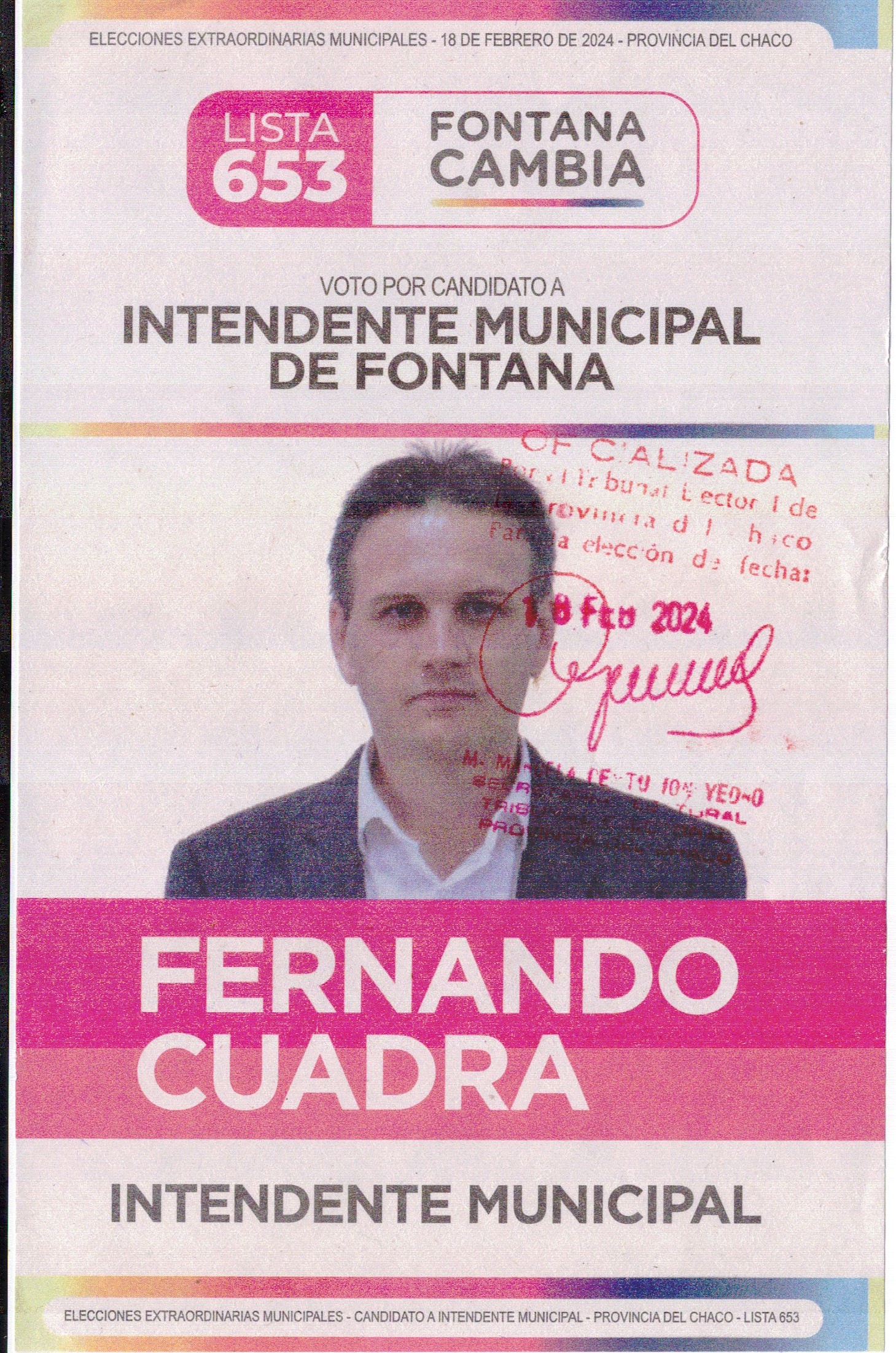 Boletas Fontana 2024 LISTA 605 - PARTIDO MOVIMIENTO DE BASES LISTA 652 - ALIANZA FRENTE CHAQUEÑO LISTA 653 - ALIANZA FONTANA CAMBIA LISTA 659 - LA LIBERTA AVANZA LISTA 747 - PARTIDO PROYECTO RENOVADOR